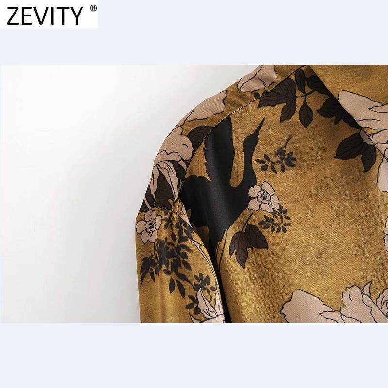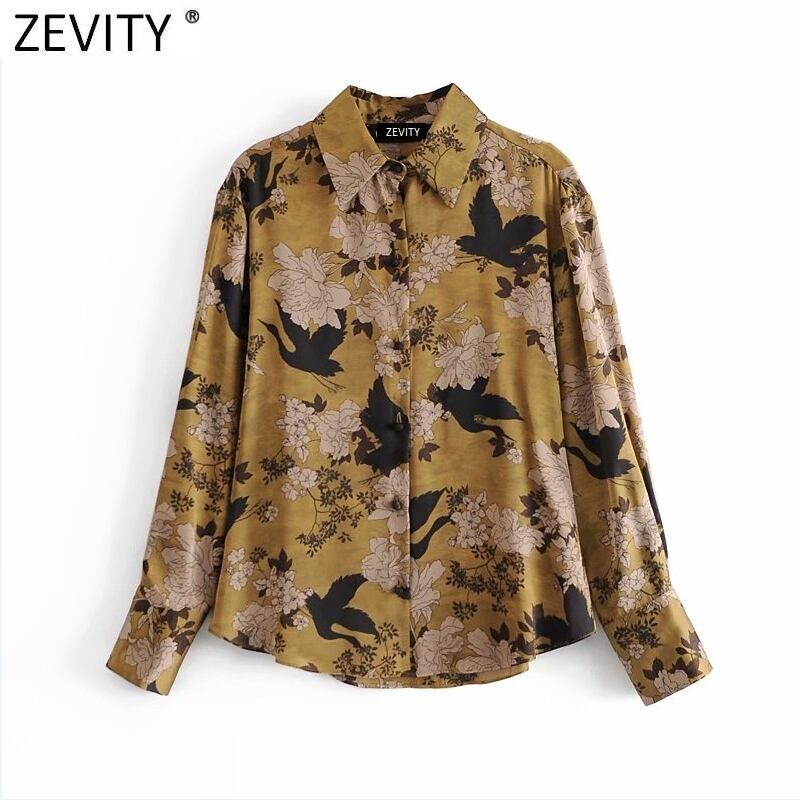 女性鳥フラワープリントスモックブラウスオフィスレディシングルブレストビジネスシャツシックトップス LS7428 フラワーデザイン 会社 学校 通勤や通学にも