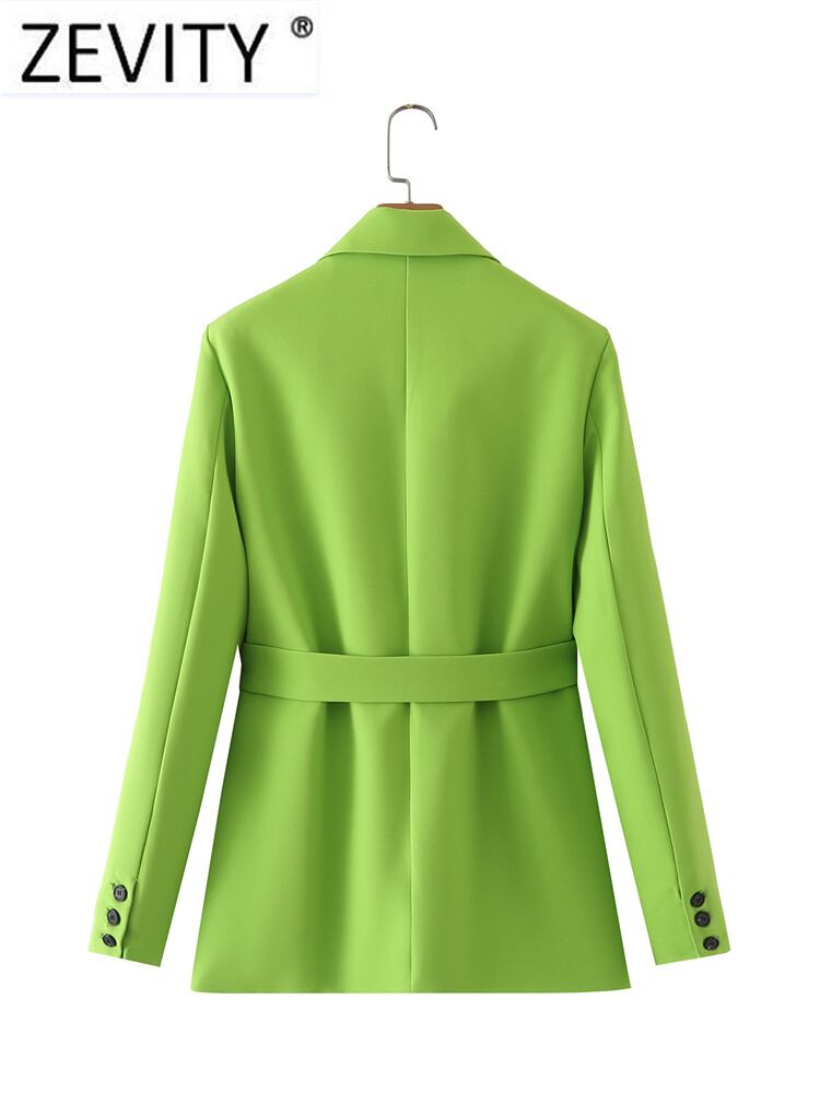 ZEVITY 女性ノッチ襟弓縛らサッシグリーンブレザーコートオフィスレディシックな長袖スーツ Veste CT1219 ロング リボン 会社 学校 通勤や通学にも