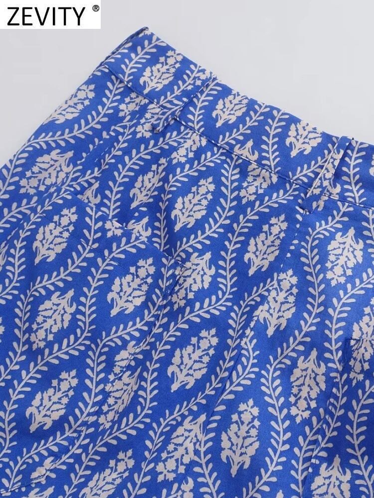 女性花柄スリム ストレート パンツ シックなボタン ビジネス長ズボン Pantalones P1984 ロング
