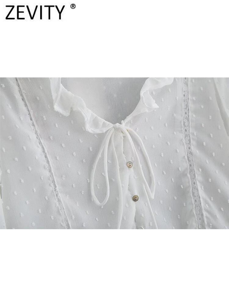女性vネックプリーツフリルショートシフォンシャツオフィスレディブラックホワイトレースアップブラウスシックトップスLS1139 ラッフル 会社 学校 通勤や通学にも