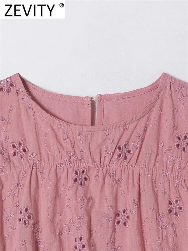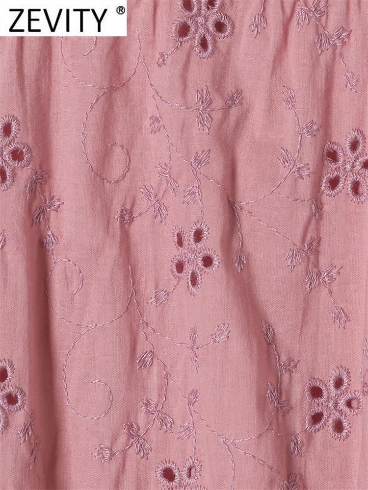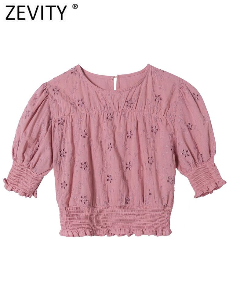 女性フレンチスタイル花刺繍裾弾性ショートスモックブラウス女性パフスリーブシャツシックなクロップトップス LS594 エラスティック 伸縮 花柄
