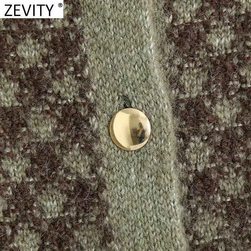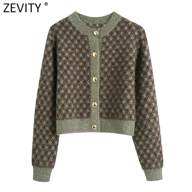 女性千鳥格子柄ショートジャカードニットセーターシックな金属ボタンアップカーディガンコートトップス SW1095