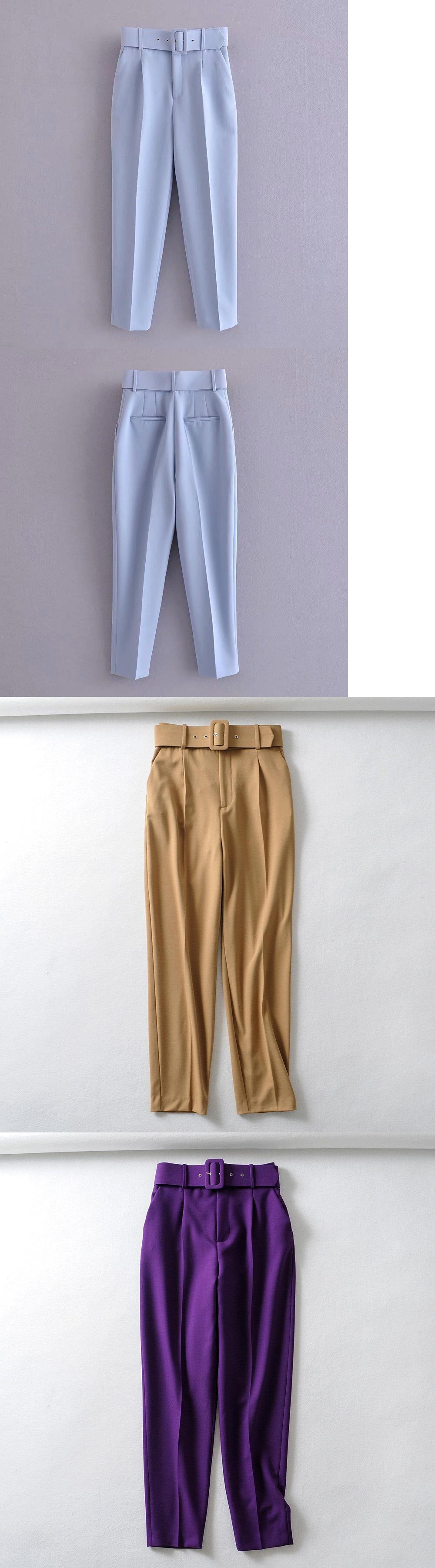 女性ファッション無地サッシカジュアルスリムパンツシックなビジネスズボン女性偽のジッパー pantalones mujer レトロパンツ P575 ソリッドカラー