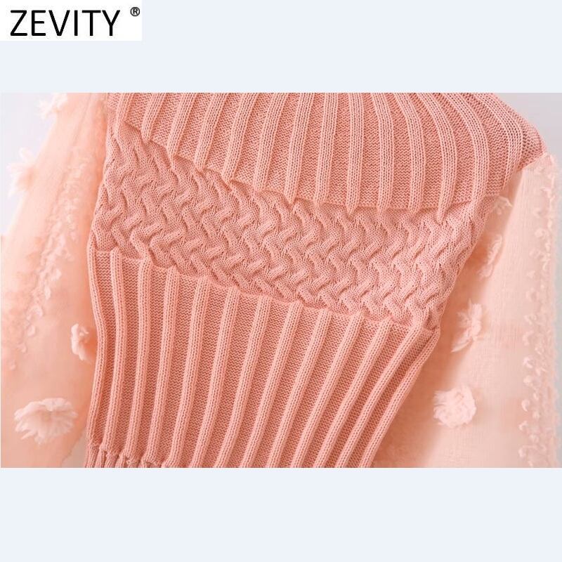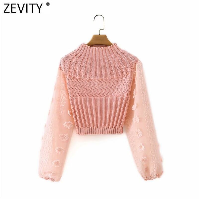 2021 女性アップリケシフォンランタンスリーブパッチワークショートニットセーターシックなプルオーバートップス S631