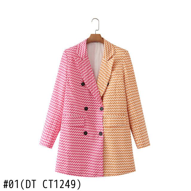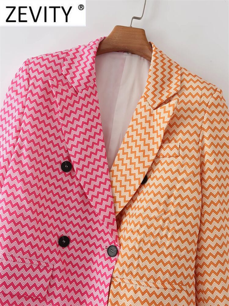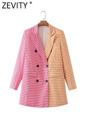 ZEVITY 女性ダブルブレスト幾何学プリントブレザーコートオフィスレディシックな長袖カラーマッチングスーツ Veste CT1249 ロング 会社 学校 通勤や通学にも