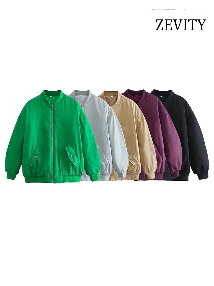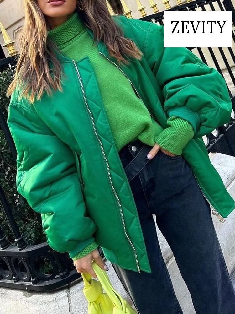 女性ルーズパッド入りボンバージャケットコートロングプリーツスリーブフロントジッパーアウターウェアシックなトップス