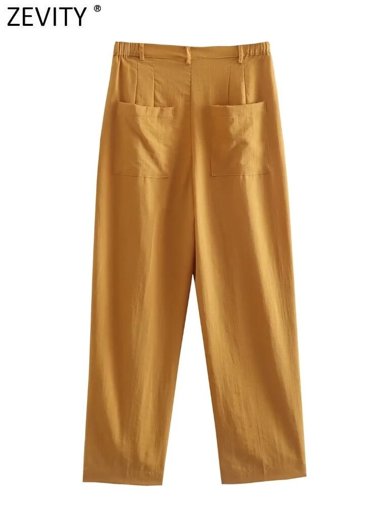 2022 女性無地ポケットプリーツハーレムパンツオフィスレディシックなジッパーフライ足首の長さのズボン P2164 ソリッドカラー 会社 学校 通勤や通学にも
