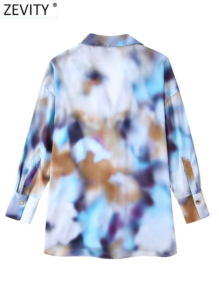 女性絞り染めプリントスモックブラウスオフィスレディ水墨画ブレストシャツシックトップス LS2054 会社 学校 通勤や通学にも
