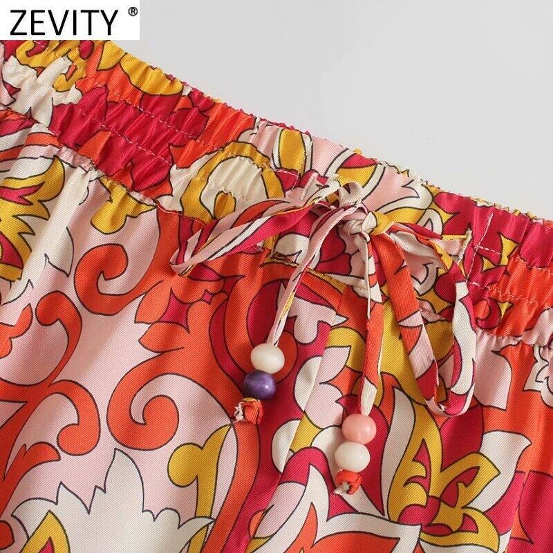 女性トーテム花柄ホットバミューダショーツシックなレースアップ弾性ウエスト夏レトロパンタロン Cortos P1161 エラスティック 伸縮 サマー 夏物 トートバッグ ブルマー