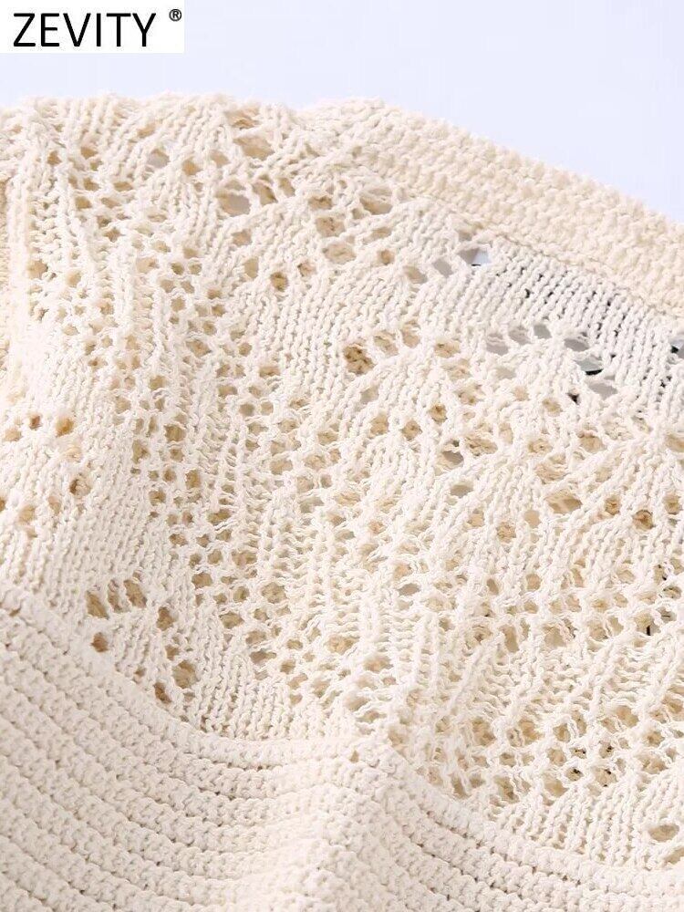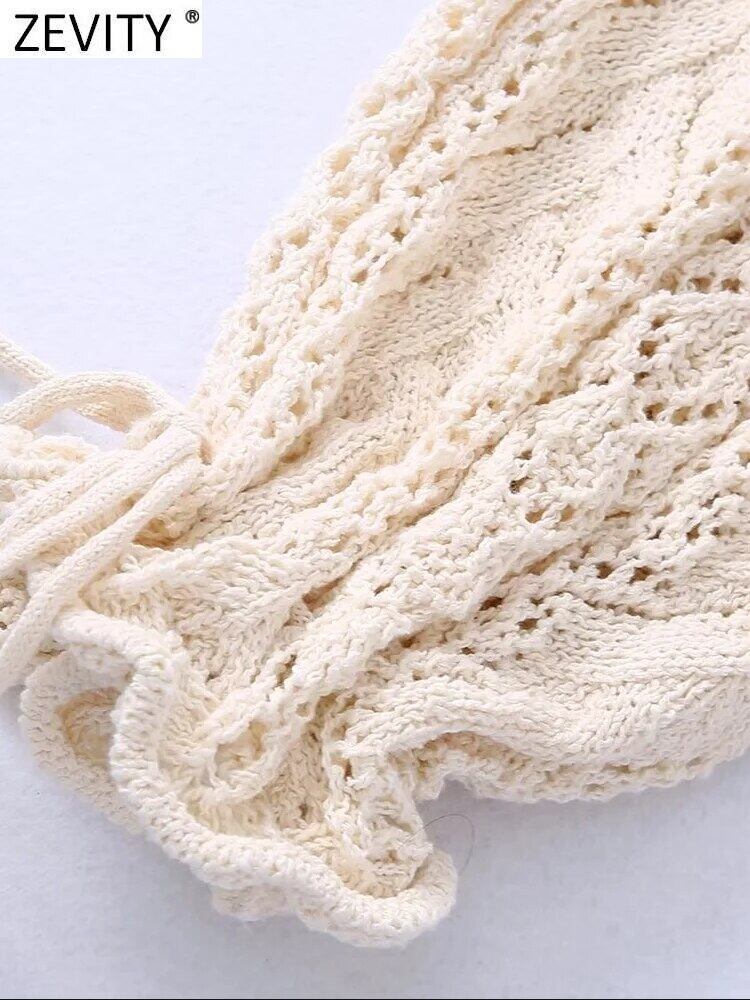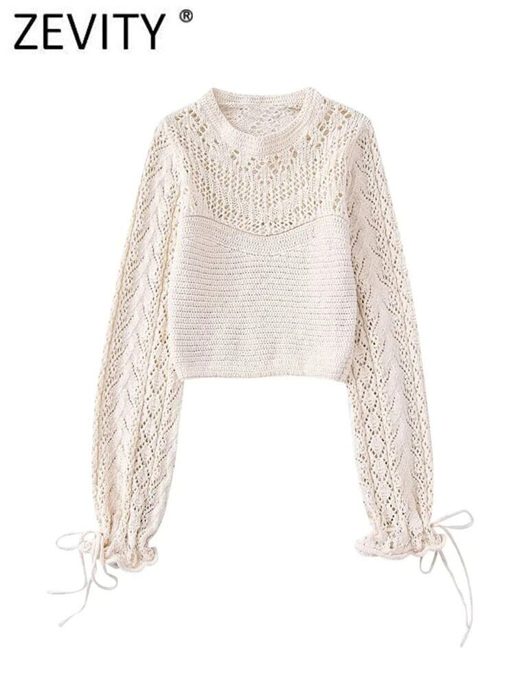 女性 O ネックジャカード中空アウトかぎ針編みパッチワークショートニットセーターレディシックなフリルプルオーバー SW1860 トップス ラッフル Oネック