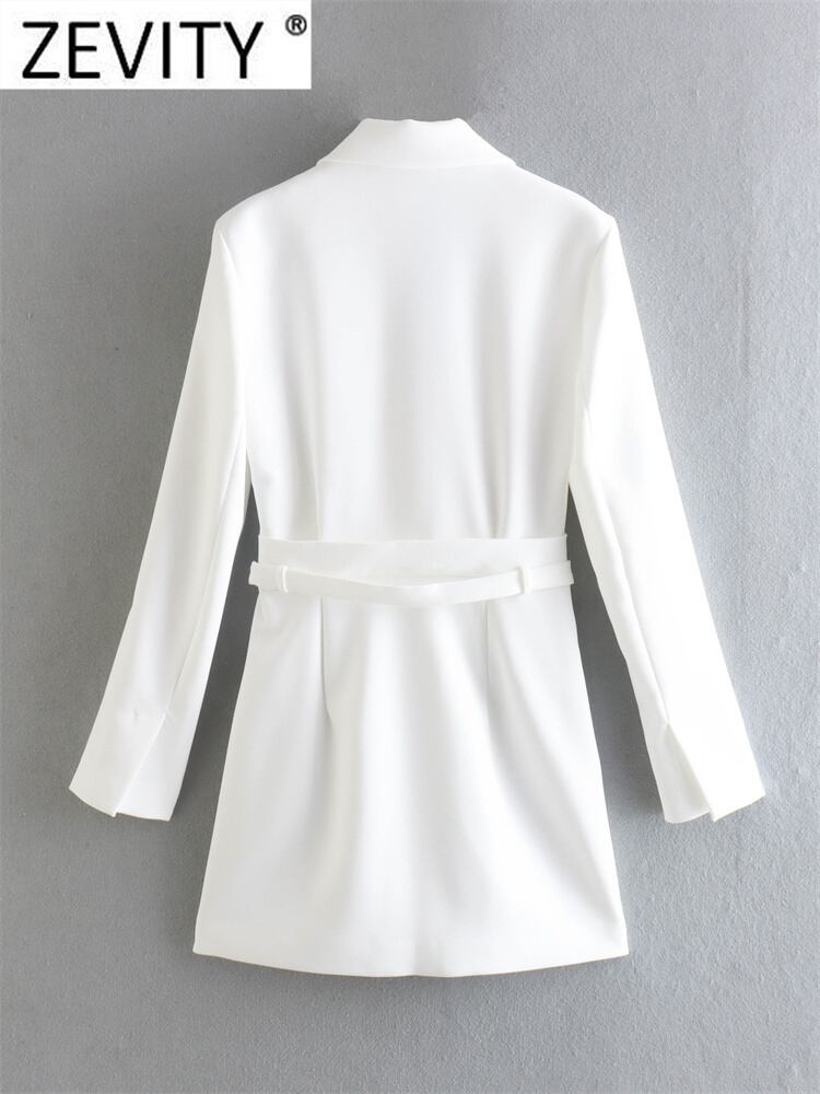 女性ストリートノッチ襟サッシホワイトミニスーツドレスシックな長袖スリムパーティー Vestidos DS915 ロング