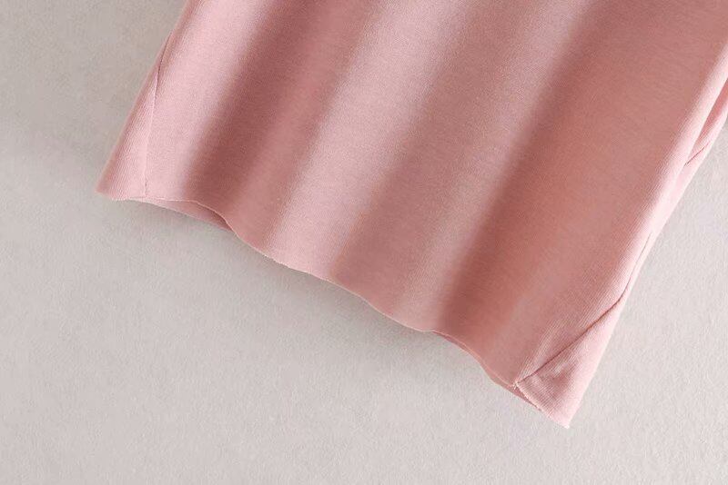 女性ファッションプリーツフリル無地カジュアル tシャツ女性フレンチスタイルの基本的な o ネックニット tシャツシックなレジャートップス T681 ラッフル Oネック ソリッドカラー