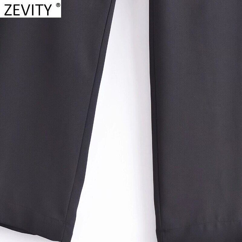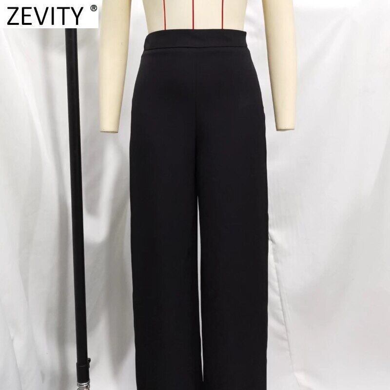 女性ウエスト黒ワイド脚パンツ サイド ジッパー フライ スリム長ズボン Pantalones P1272 ロング ブラック ワイドレッグ ワイドパンツ