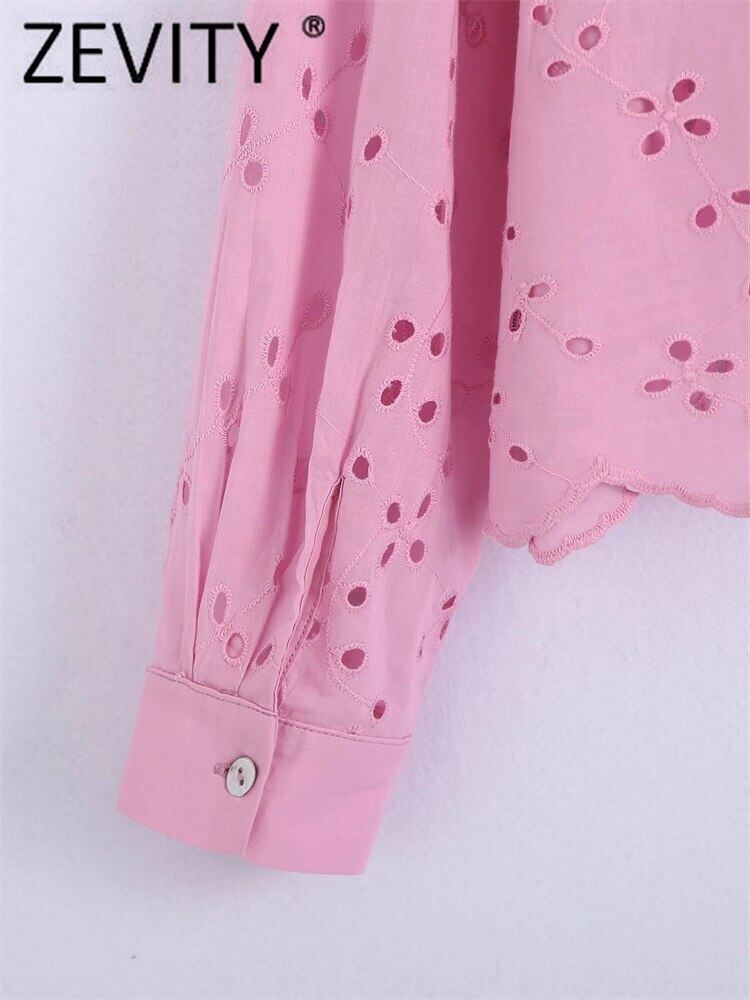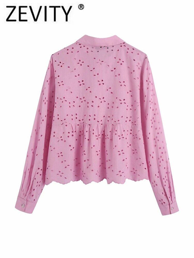 2022 女性中空アウト刺繍ピンクブラウスオフィスレディバックプリーツビジネスシャツシックなトップス LS3009 会社 学校 通勤や通学にも