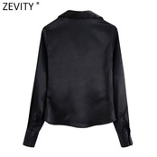 女性プリーツ ブラック サテン スリム ブラウス オフィス シングル ブレスト シャツ シックなトップス LS9724 会社 学校 通勤や通学にも