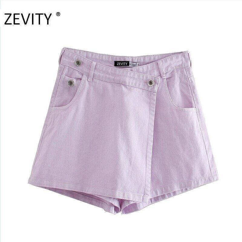 ZEVITY 女性ヴィンテージボタンポケットパッチショーツスカートレディースカジュアルスリムジッパーフライショーツシックなパンタロン cortos P928 ブルマー ビンテージ
