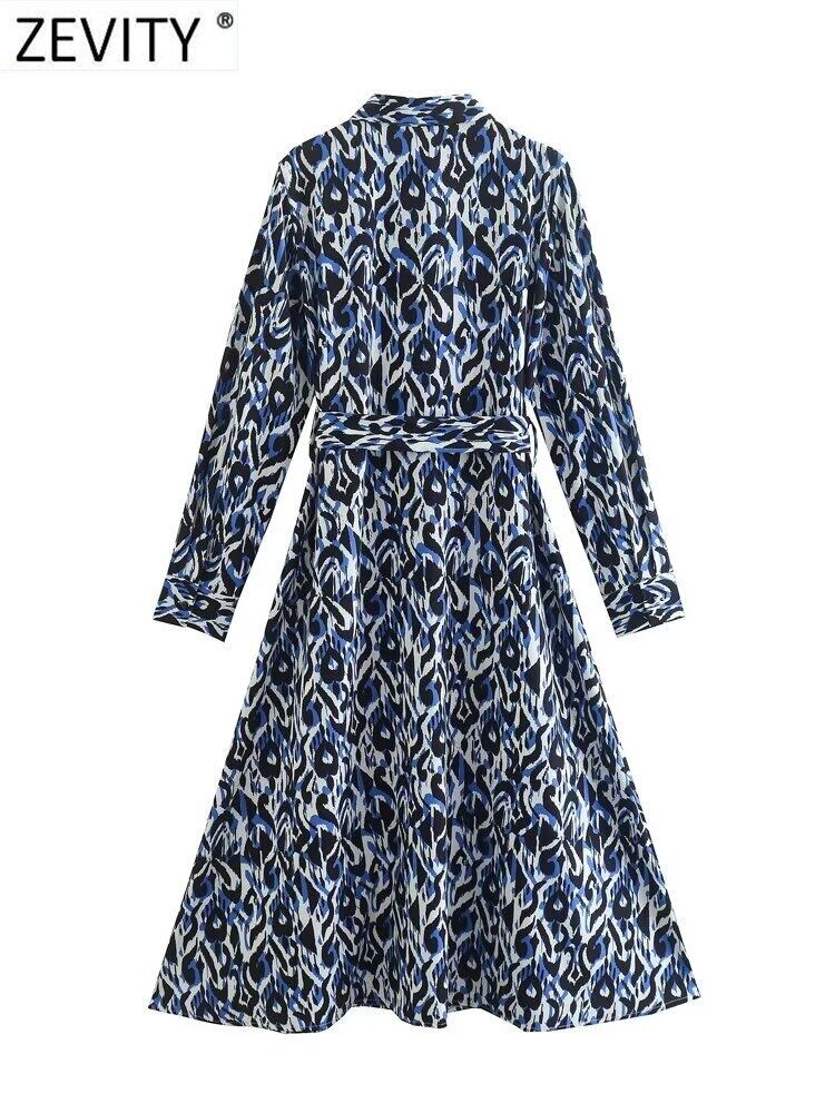 女性カラーマッチンググラフィティプリントスリムミディシャツドレスシックなブレストサッシ Vestidos DS2098