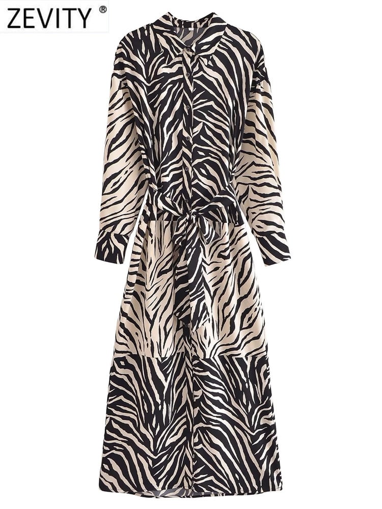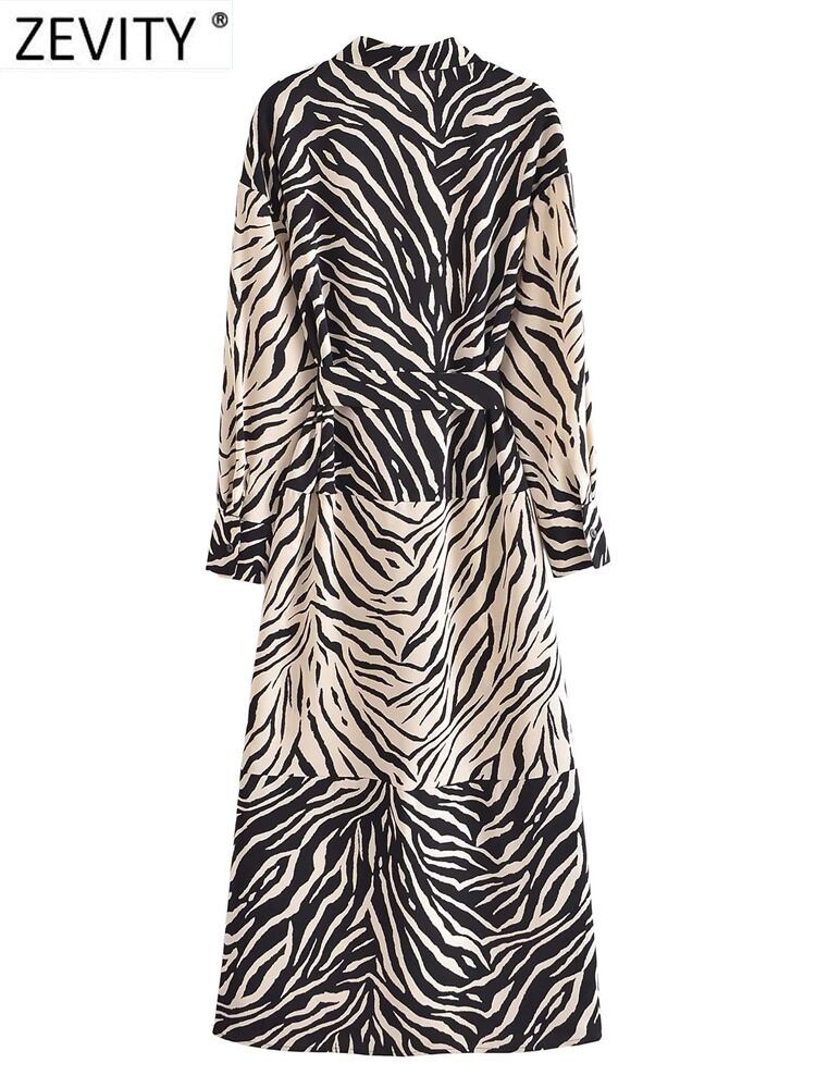 女性カラーマッチング Zerbra ストライププリント弓サッシミディシャツドレスレトロボタン Vestidos DS2281 リボン