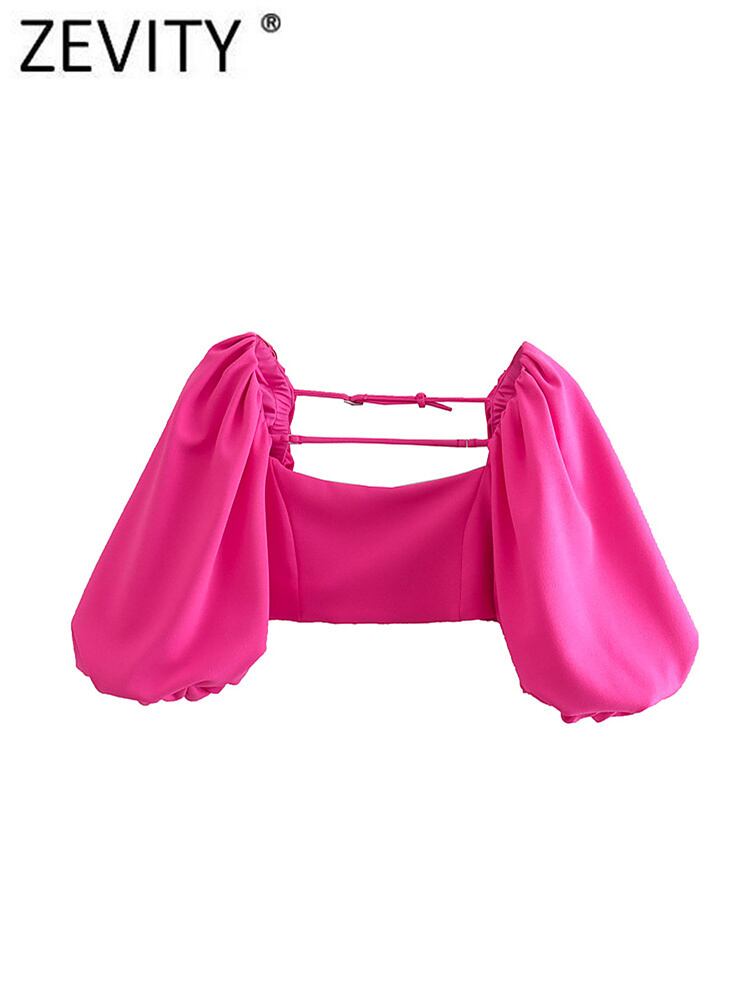 女性のセクシーなスクエアカラー固体スリムショートスモックブラウスパフスリーブバックルラインシャツシックな夏のクロップトップス LS899 サマー 夏物 ソリッドカラー スクウェア
