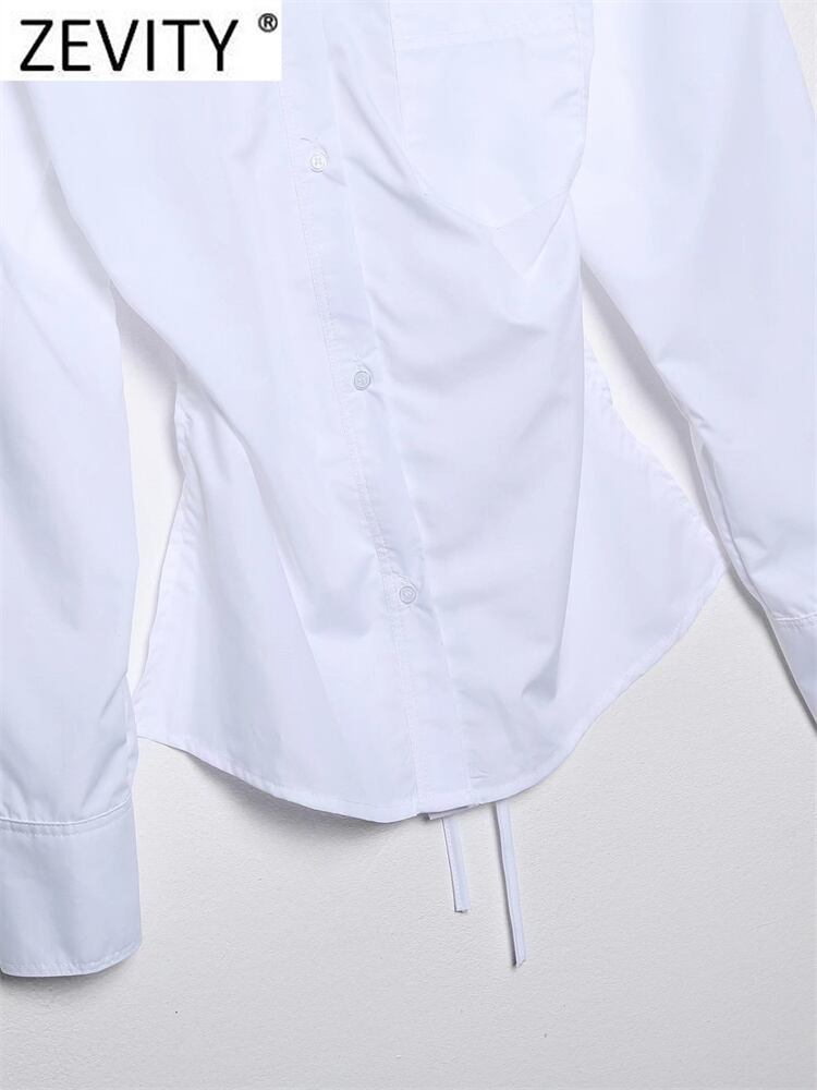 女性ターンダウン襟長袖スリムホワイトブラウスオフィスバックレスレースアップシャツシックトップス LS596 ロング 会社 学校 通勤や通学にも
