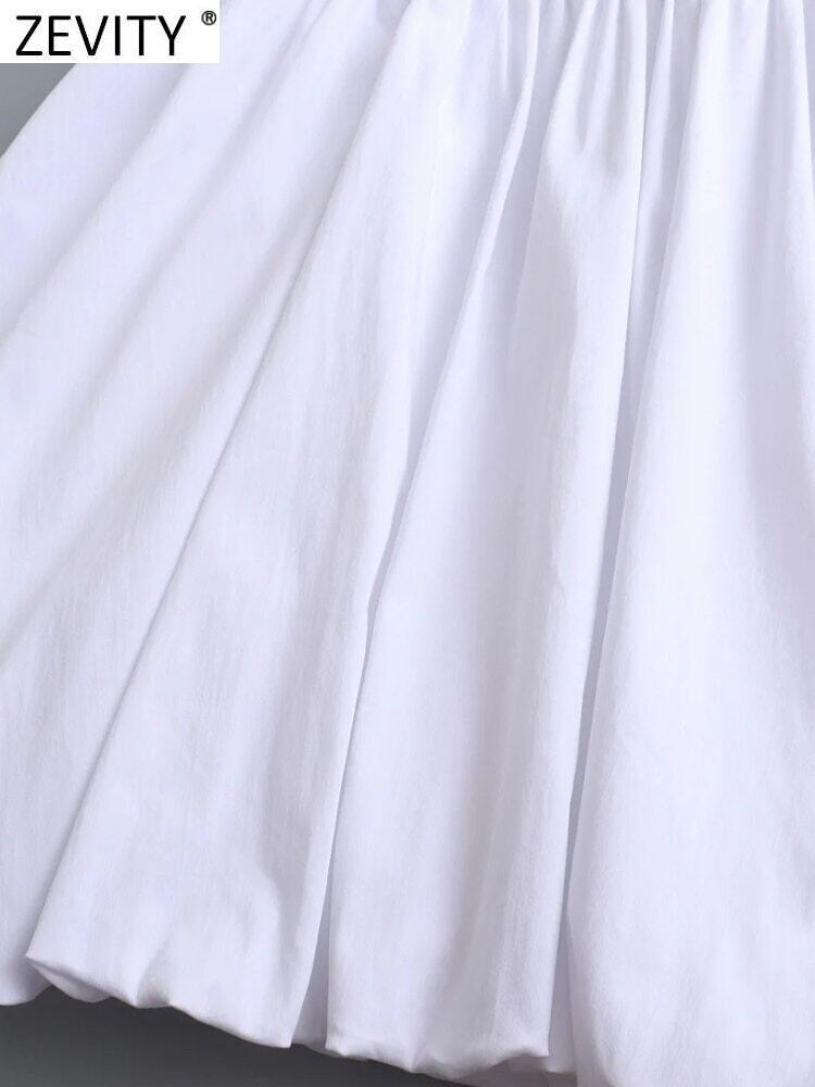 女性のセクシーなディープ V ネック プリーツ ホワイト ポプリン スリング ミニ ドレス シックなバック ジッパー夏 Vestidos DS9423 サマー 夏物 Vネック