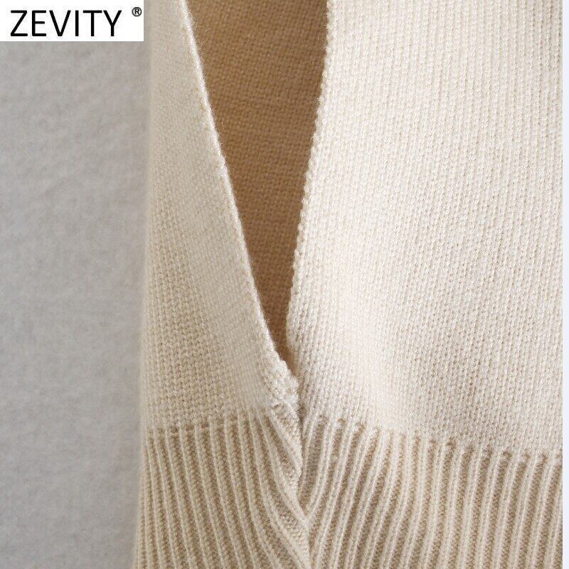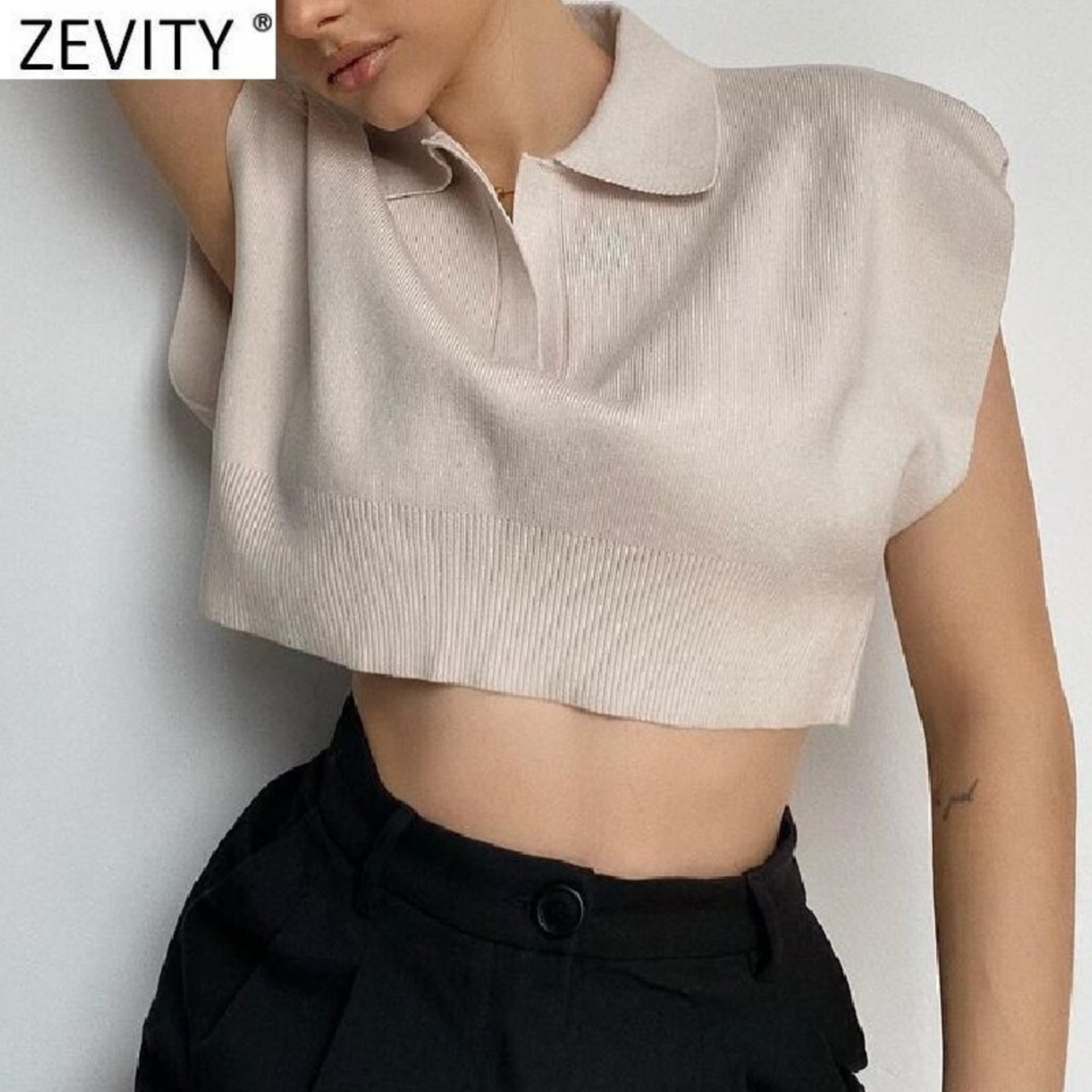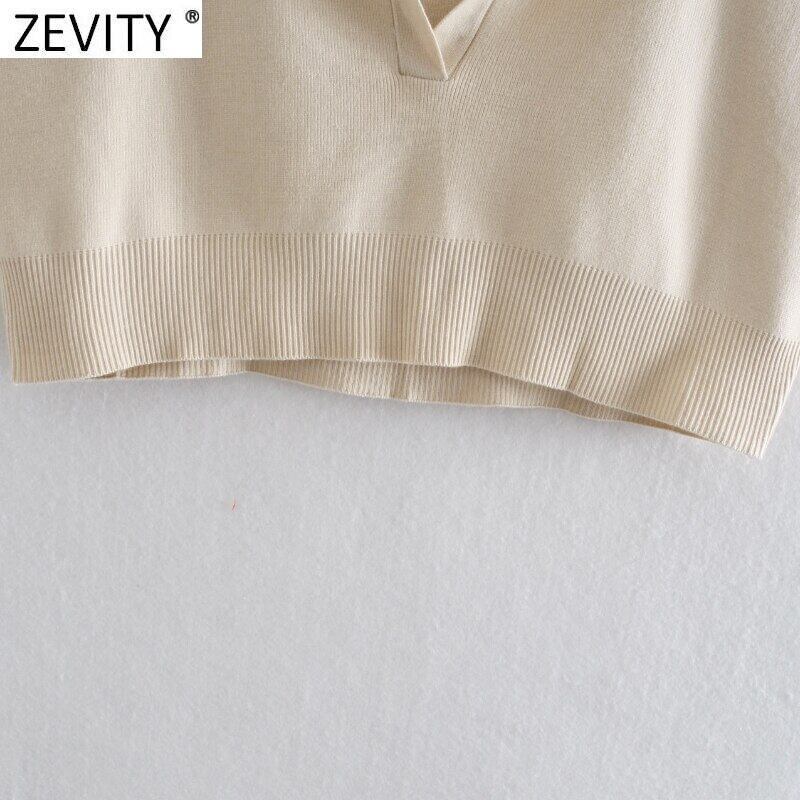 ZEVITY 女性ターンダウン襟無地ショートニットセーター半袖セーターシックなクロップトップス SW834 ハーフスリーブ ソリッドカラー