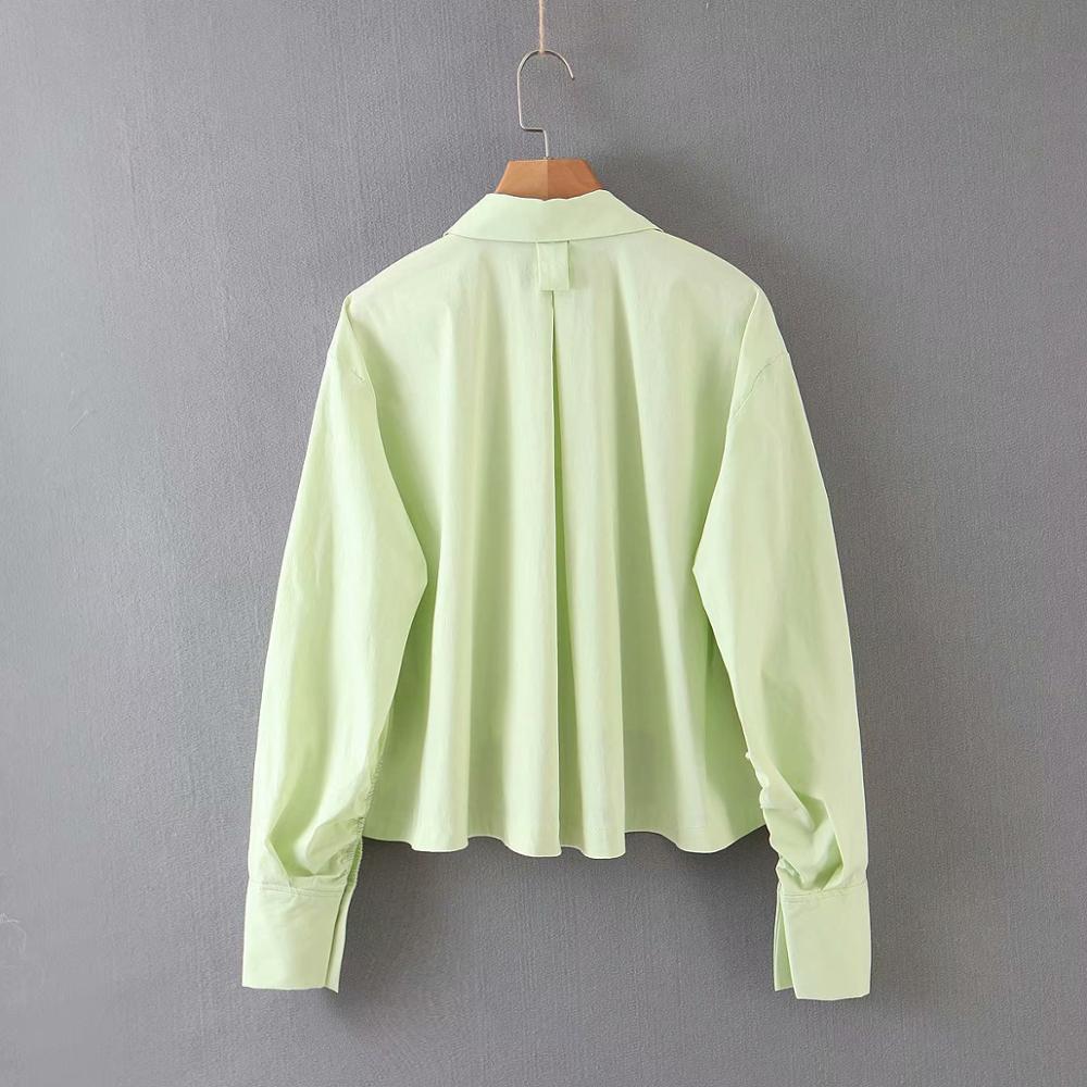 女性シンプルソリッドダブルポケットパッチカジュアルルーズグリーンブラウスシャツ女性シックなオフィス blusas 不規則なシュミーズトップス LS6431 ソリッドカラー 会社 学校 通勤や通学にも