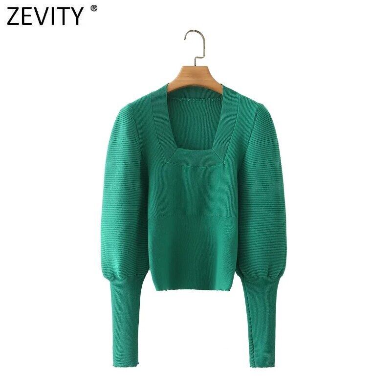 女性ソリッドスクエアカラースリムショートニットセーターシックなランタンスリーブプルオーバートップスSW1008 ソリッドカラー スクウェア