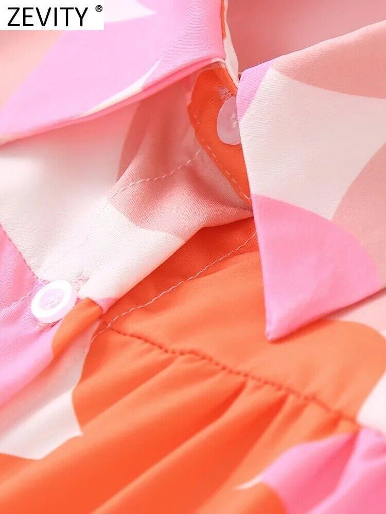 女性花柄パッチワーク プリーツ ミニ シャツ ドレス シックなパフ スリーブ ビジネス Vestidos DS1657