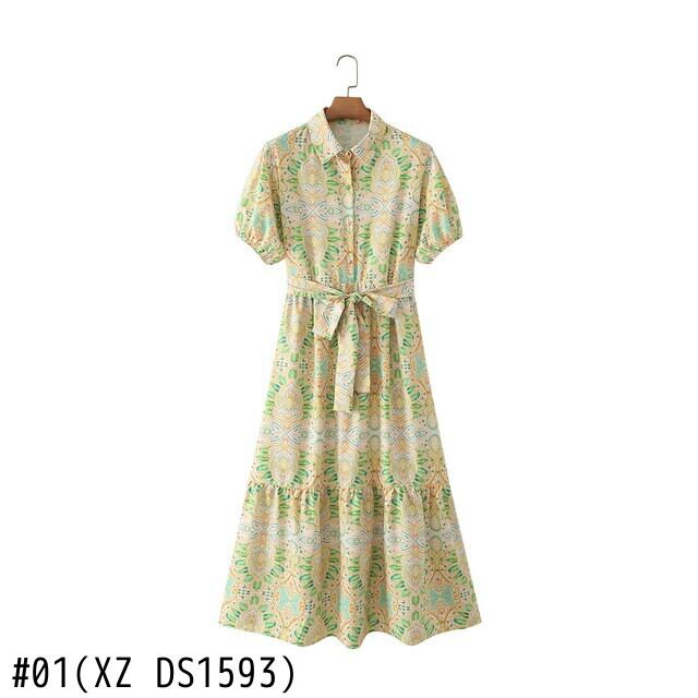 女性トーテム花柄ブレストスリムミディシャツドレスオフィスレディシックなパフスリーブサッシ Vestido DS1593 トートバッグ 会社 学校 通勤や通学にも