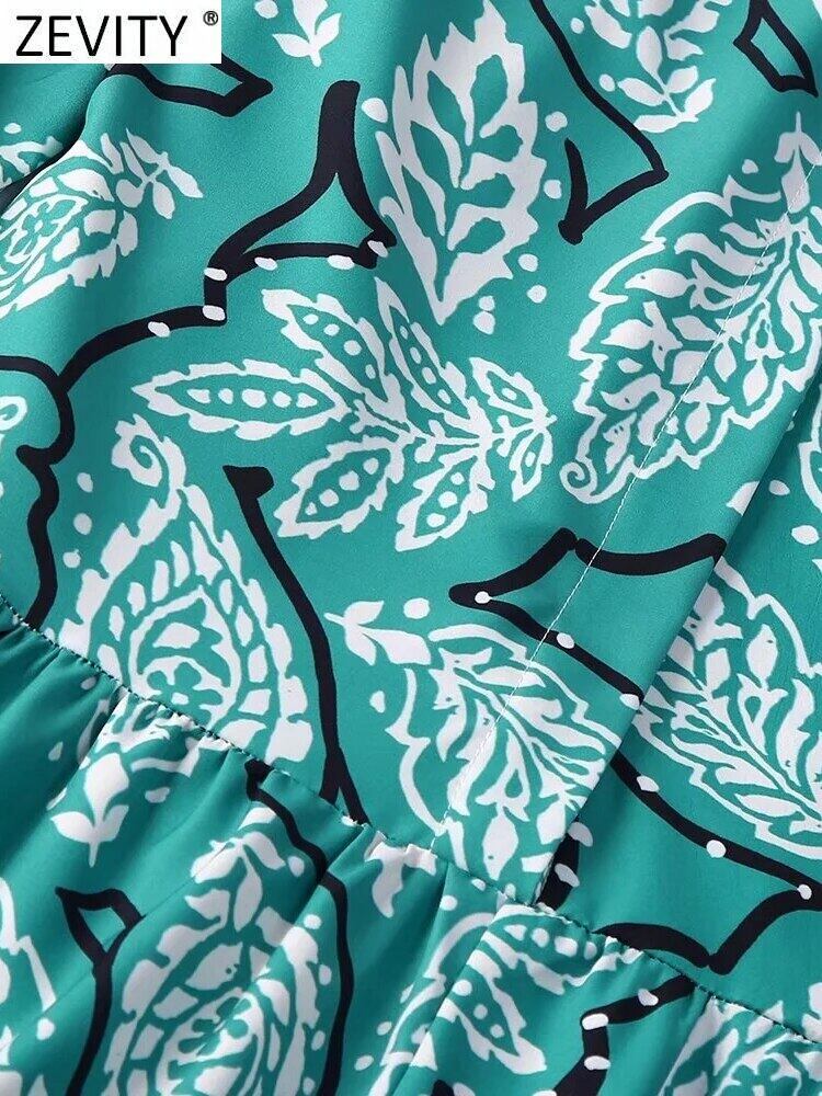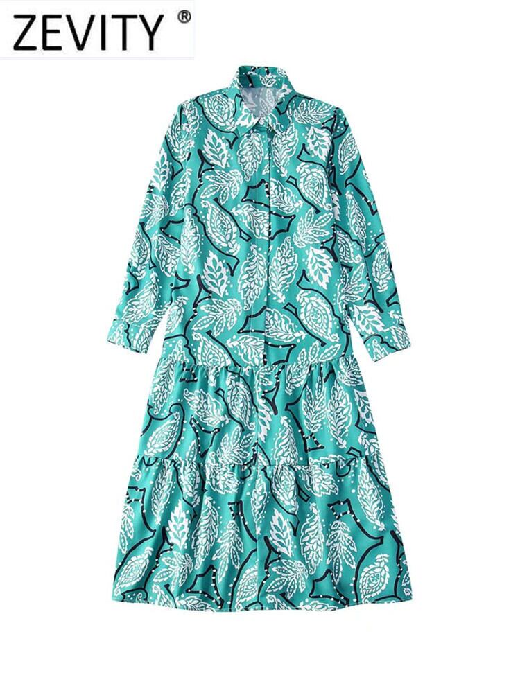 女性ドット葉プリント裾プリーツミディシャツドレス長袖ビジネス Vestidos シックなドレス DS1242 ロング