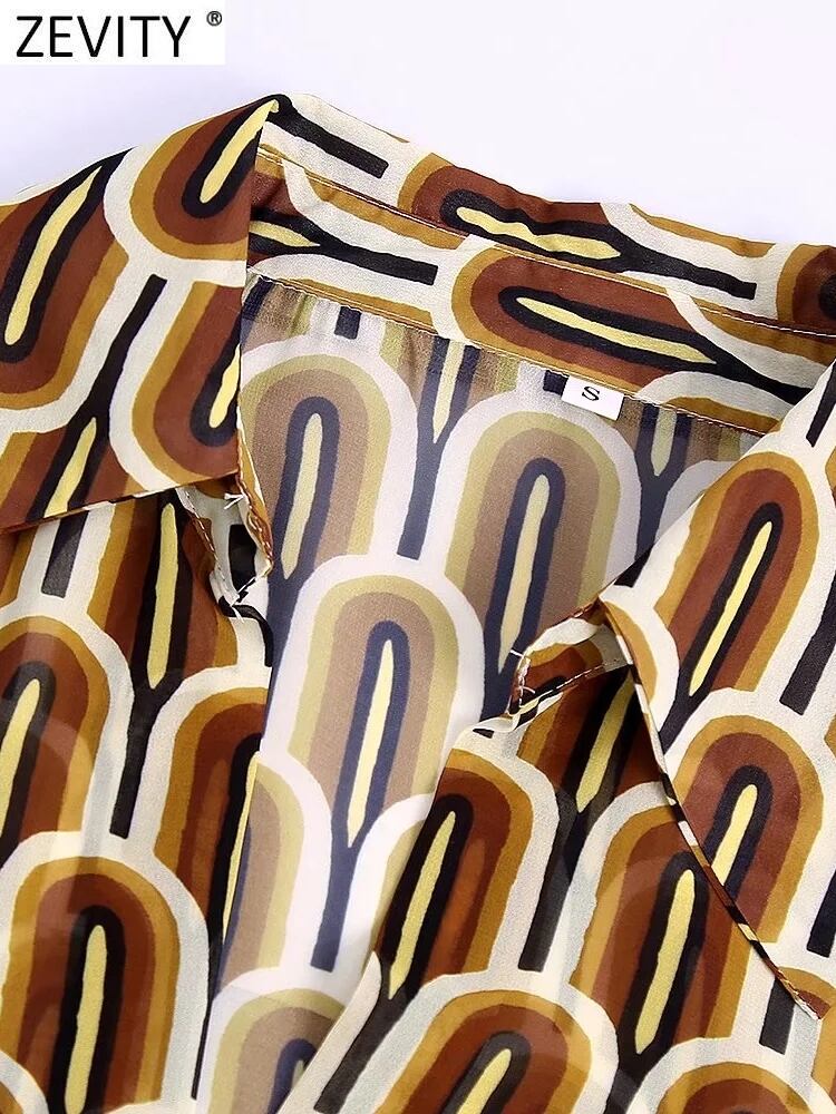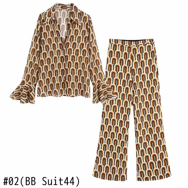 女性コントラスト幾何学プリント シフォン シャツ フリル フレア スリーブ ブラウス Roupas シックなトップス LS844 フレアスリーブ ラッフル