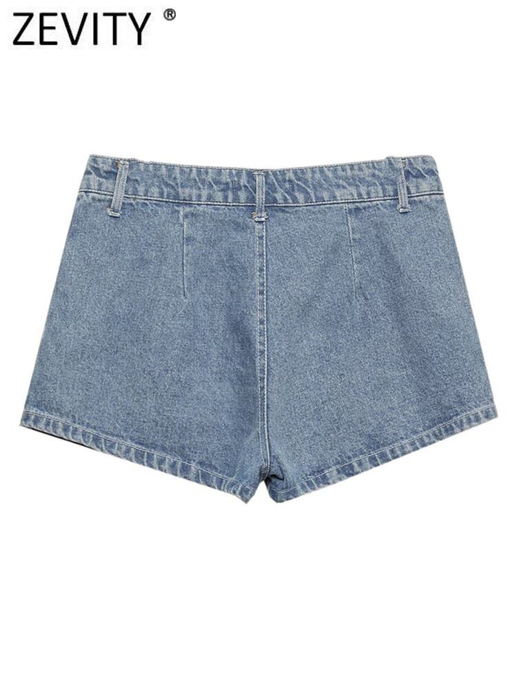ZEVITY 女性ポケットプリーツデニムショーツスカートジッパーフライリネンホットショーツシックなパンタロン Cortos P945 ブルマー