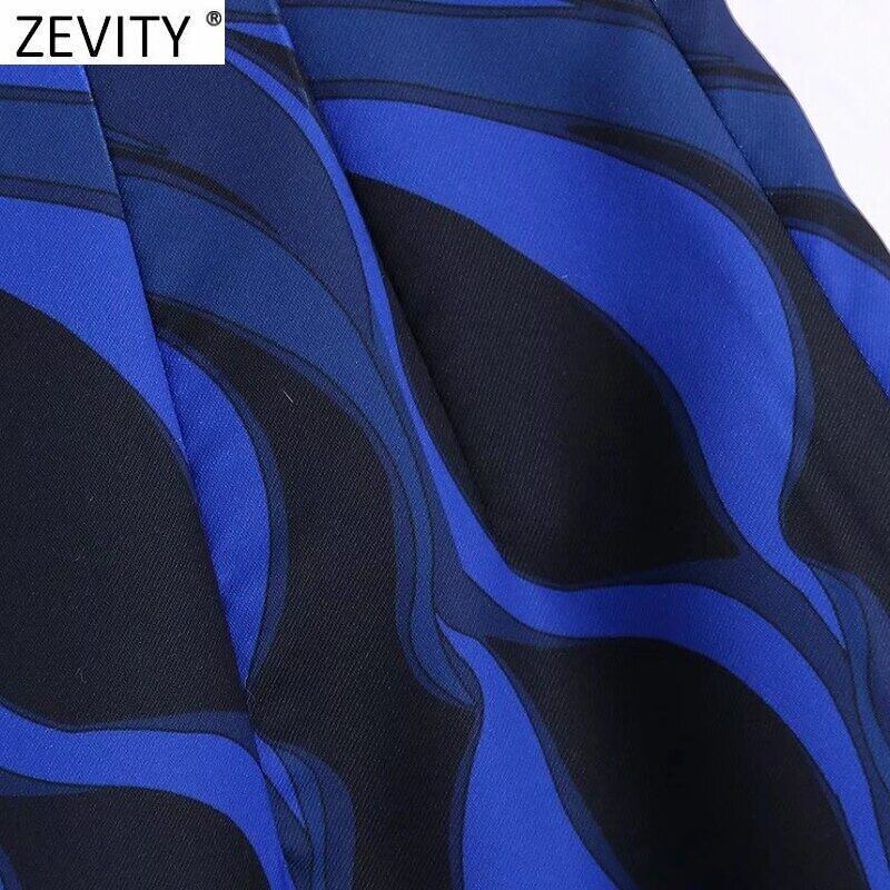 女性コントラストカラー幾何学プリントミニスカート段 Faldas シックなプリーツジッパースリム Vestido QUN920