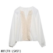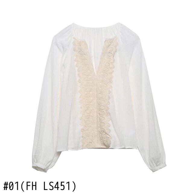 女性レースかぎ針編みパッチワークルーズブラウスオフィス長袖シャツシックトップス LS451 ロング 会社 学校 通勤や通学にも
