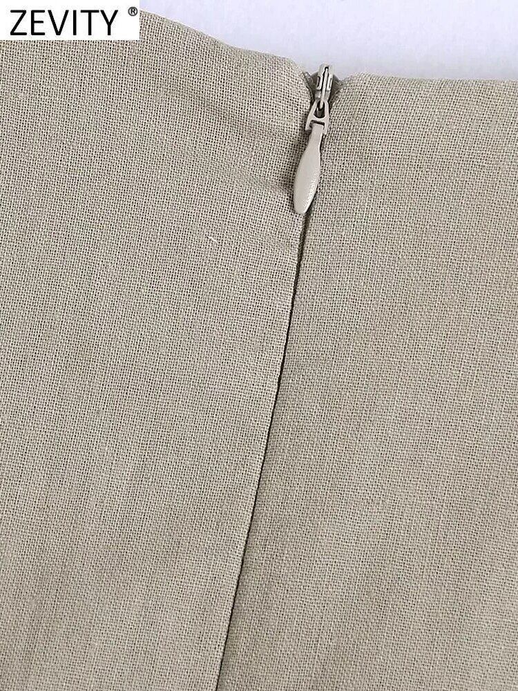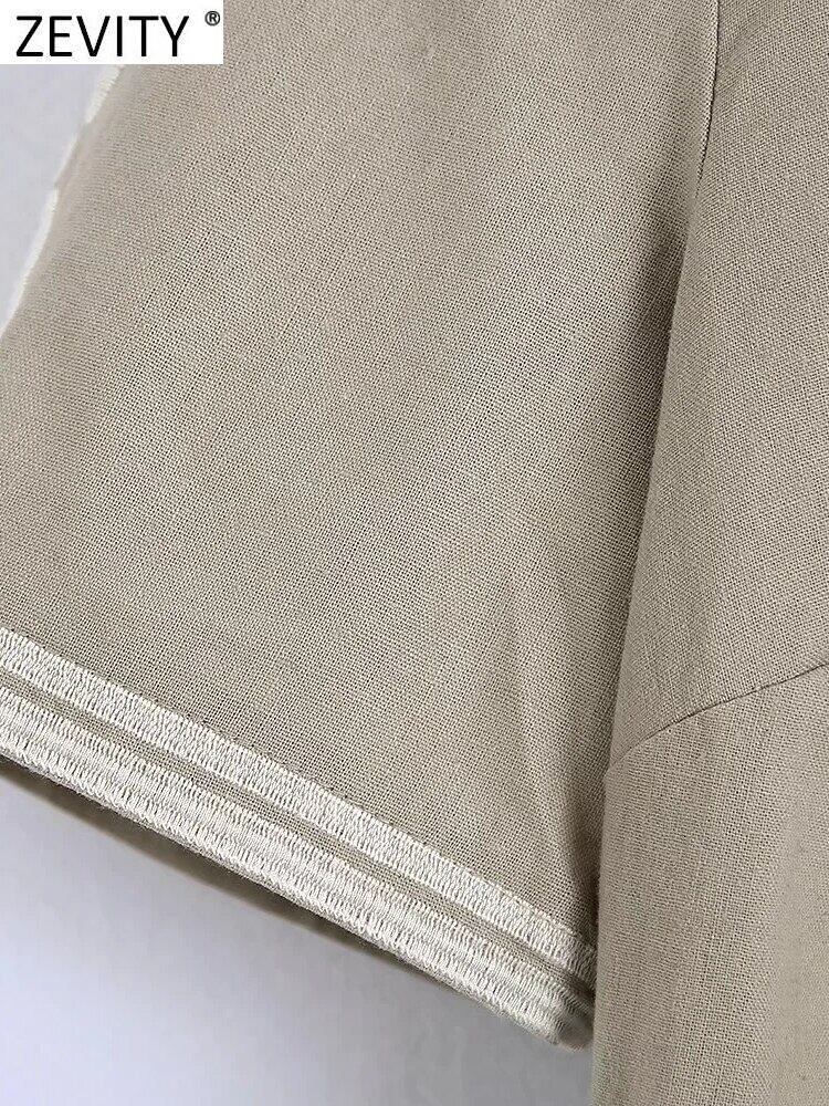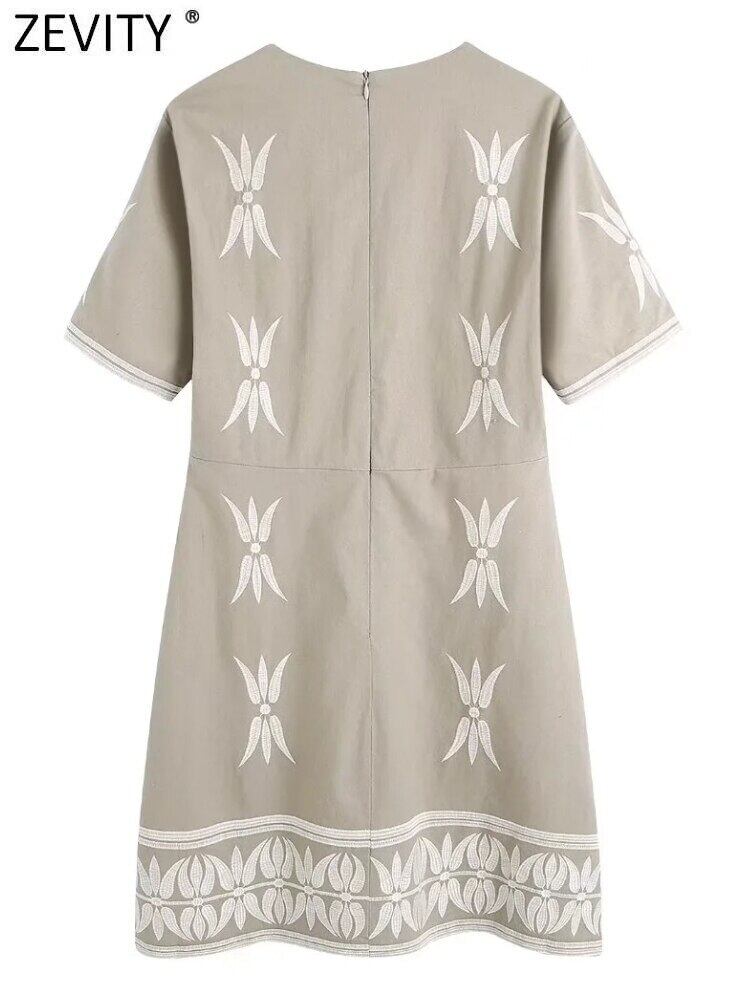 ZEVITY 女性フローラル刺繍リネンミニドレスシックな O ネック半袖バックジッパー Vestidos DS310 ショート ハーフスリーブ 花柄 Oネック