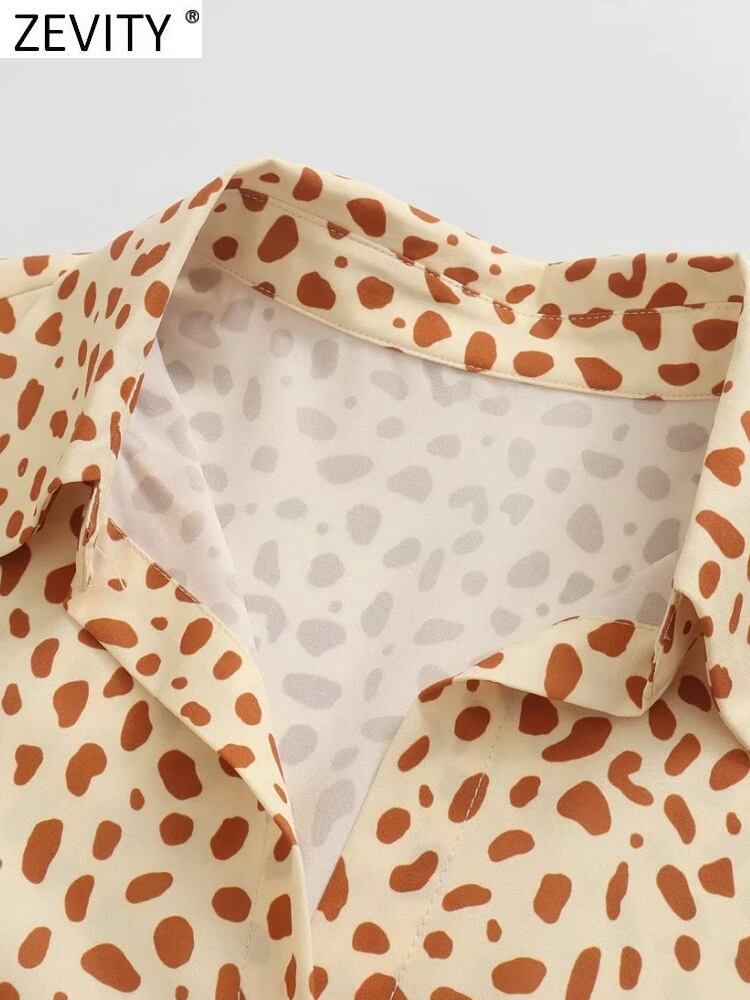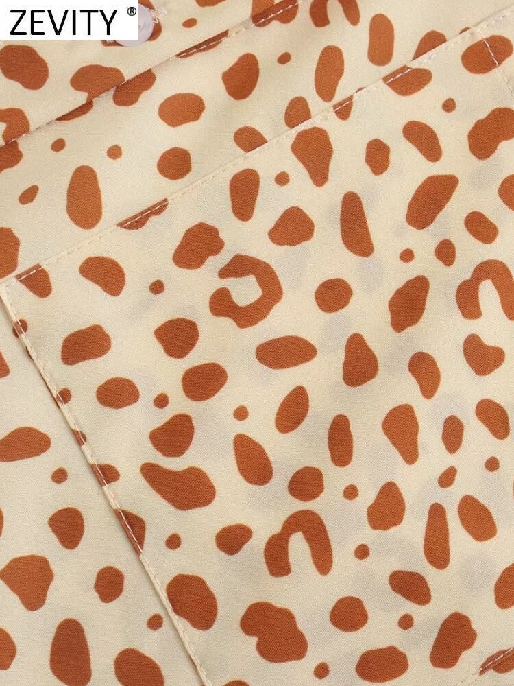 女性ヒョウ柄ポケット スモック ブラウス オフィス レディー長袖ボタン スリム トップス LS1356 ロング 会社 学校 通勤や通学にも