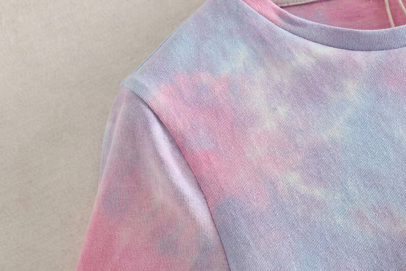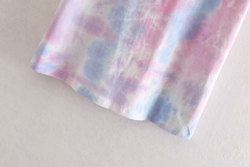 2020 女性の夏のグラデーション絞り染め絵画カラフルなカジュアル Tシャツ女性の O ネック Basci ニットシックな Tシャツレジャートップス T639 サマー 夏物 Oネック