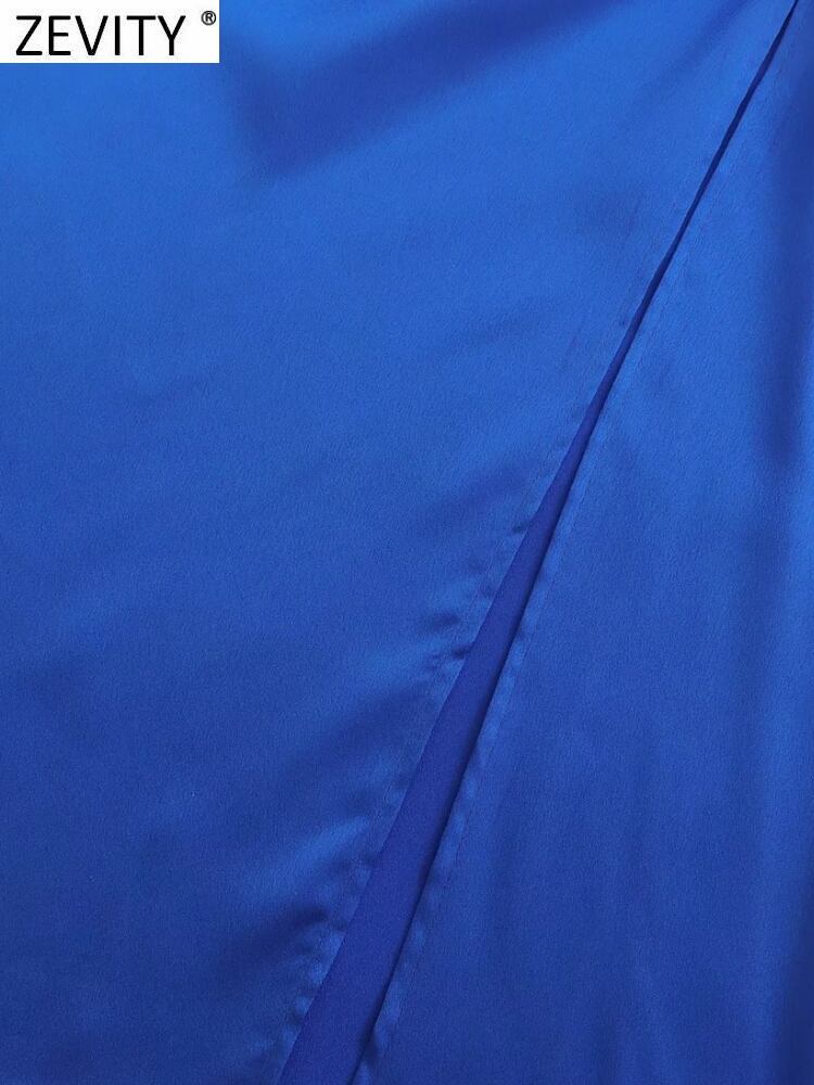 女性プリーツスプリットスリムミディスカート段 Faldas オフィスレディブルージッパーサテン A ライン Vestidos QUN803 Aライン 会社 学校 通勤や通学にも