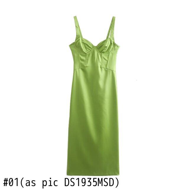 女性のセクシーな V ネックコルセットスタイルソフトサテンバックスプリットスリングミディドレスシックなバックジッパースリムパーティー Vestidos DS1935 Vネック