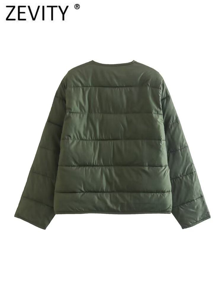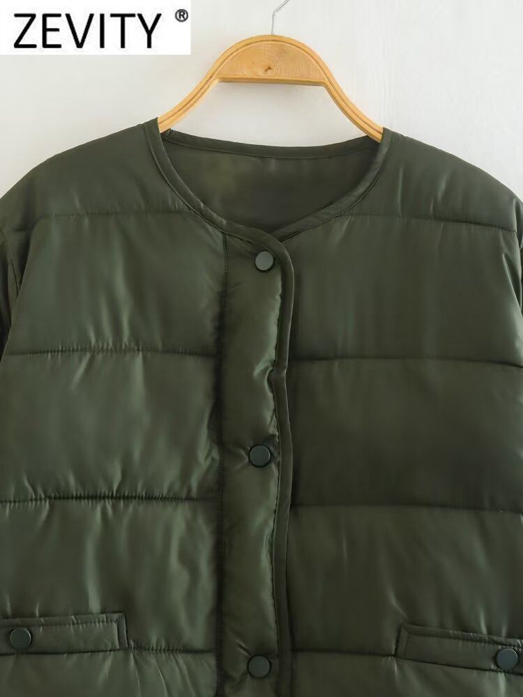 女性 O ネック CoverButtons ポケット ジャケット コート長袖キルティング コットン アウター シックなトップス CT2393 ロング Oネック