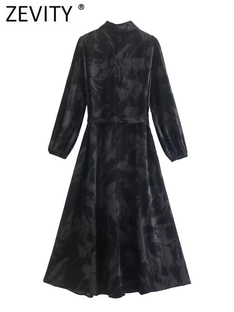女性フラワープリント弓サッシミディシャツドレスオフィスレディ長袖ボタンビジネス Vestidos DS2392 ロング リボン フラワーデザイン 会社 学校 通勤や通学にも