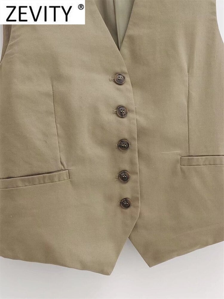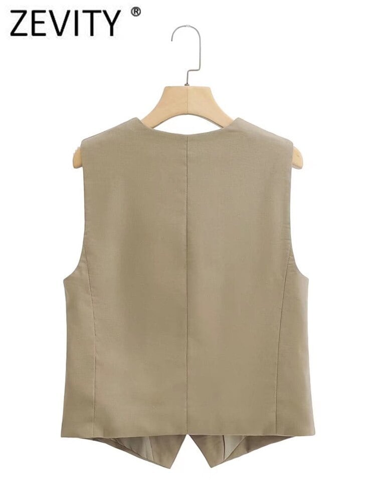 レディースVネックノースリーブシングルブレストジャケット スリムトップス 会社 学校 通勤や通学にも Amy70560272682