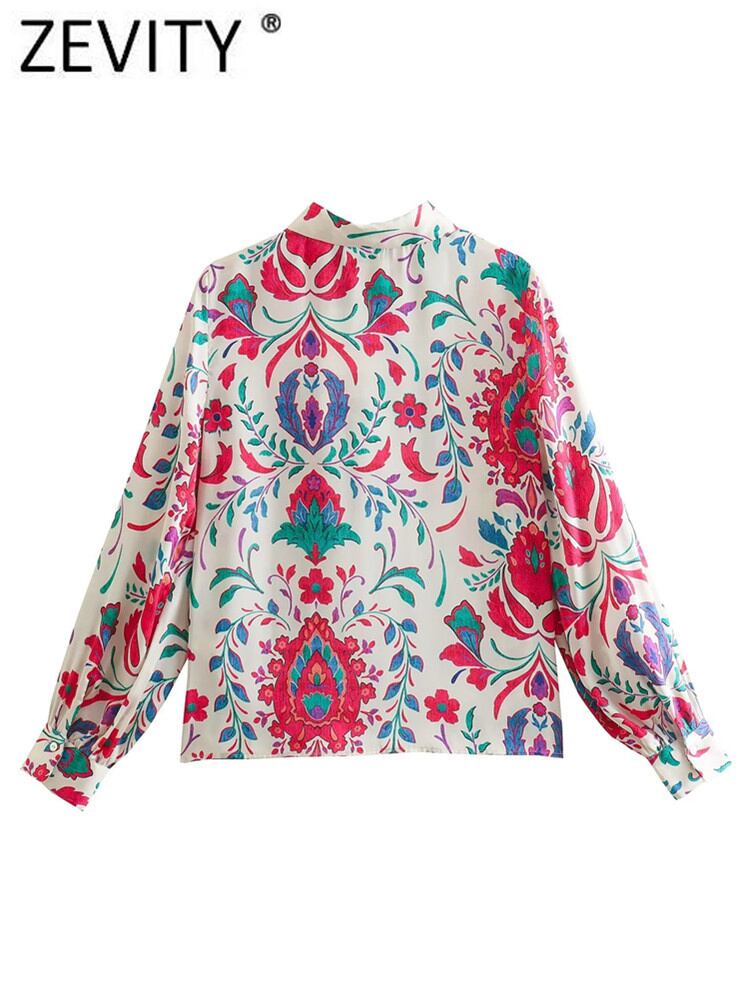 レディースフローラルリーフプリント柄ブラウス 長袖スリーブシャツ トップス ロング 花柄 会社 学校 通勤や通学にも Amy65037620703