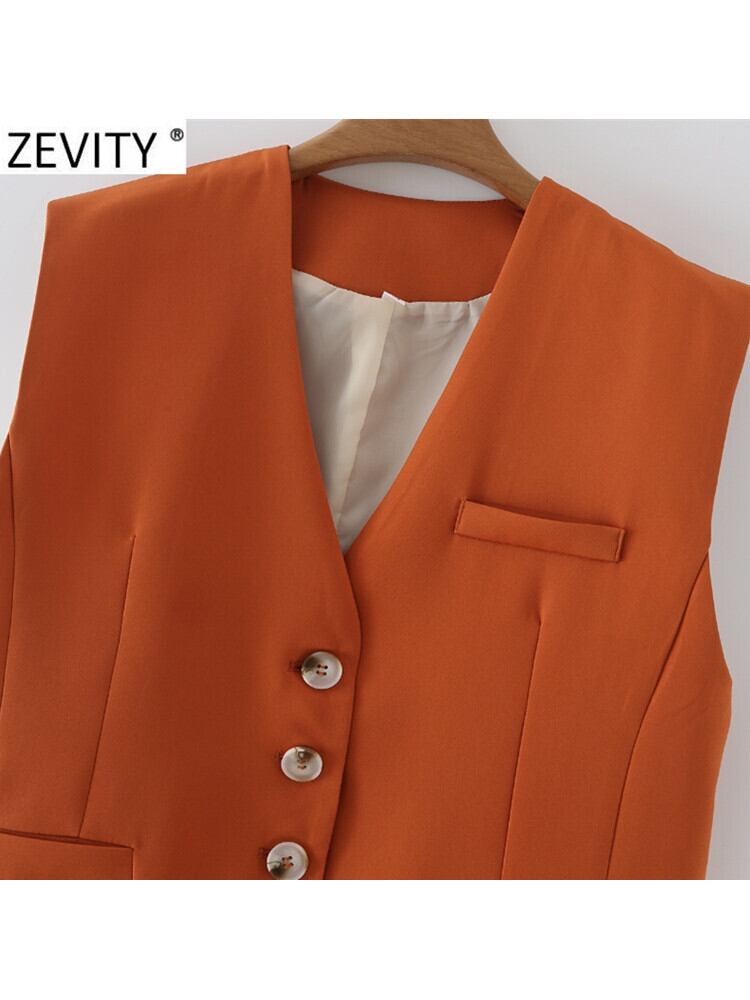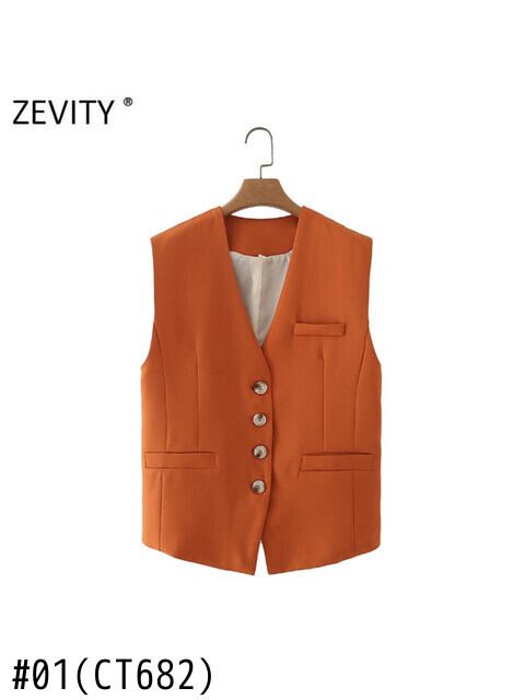 レディースノースリーブシングルブレストオレンジジャケット スリムトップス シンプル 会社 学校 通勤や通学にも Amy89017022931