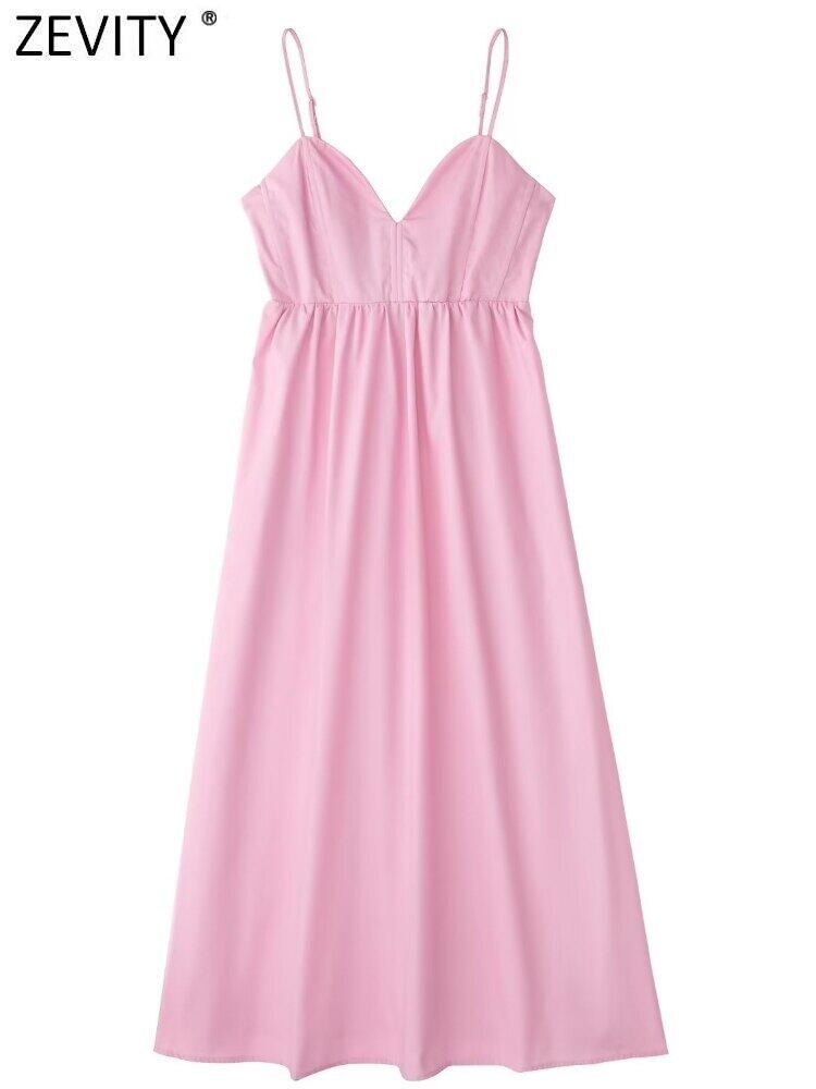 レディースVネックソリッド ミディドレス バックストレッチジッパー エラスティック 伸縮 ソリッドカラー Amy50888629882