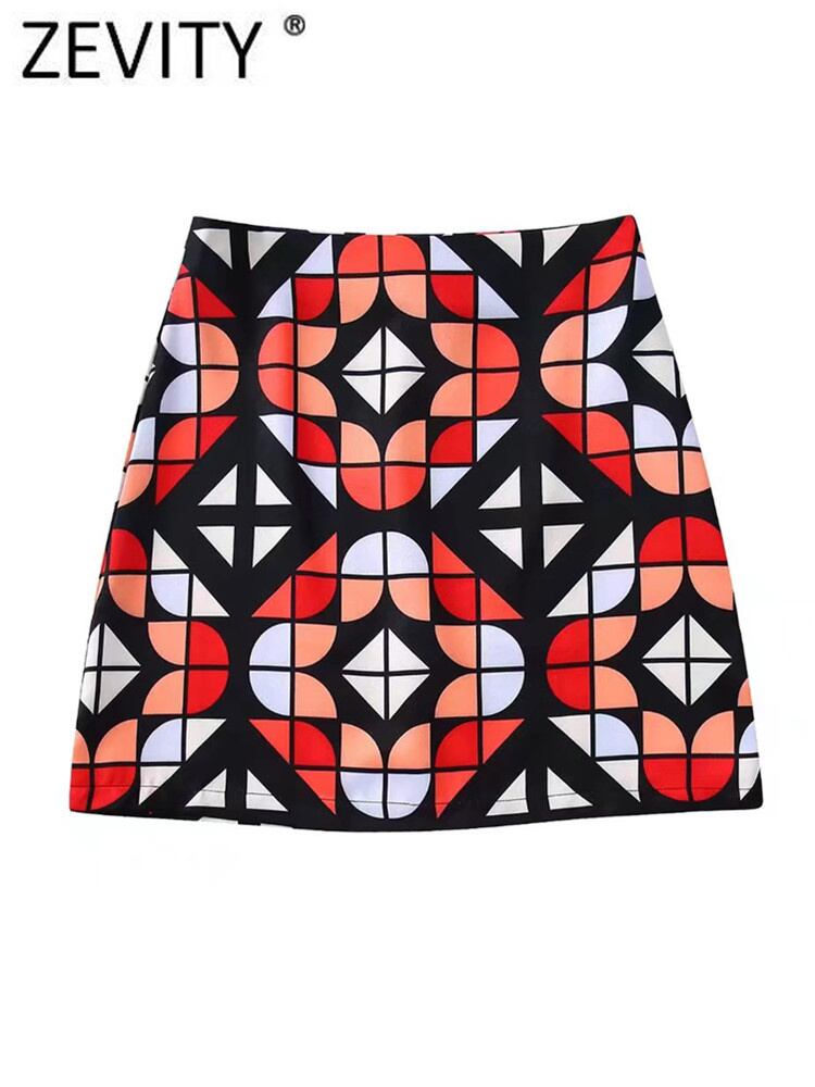 女性コントラストカラー幾何学プリントミニスカート段 Faldas ジッパーフライ夏レトロ Vestidos QUN1649 サマー 夏物