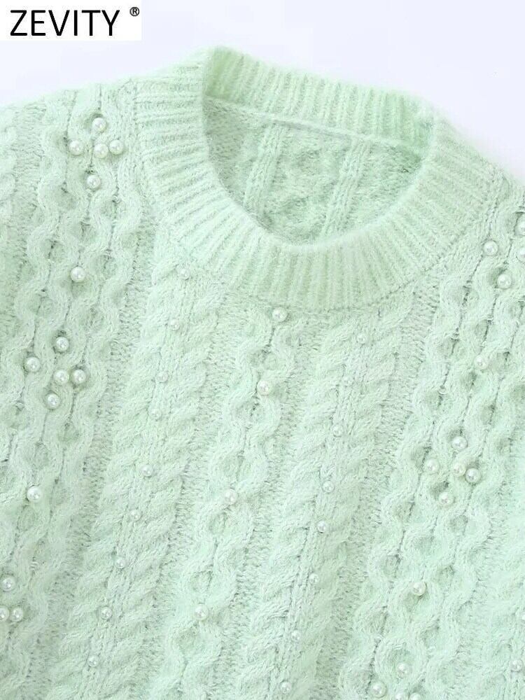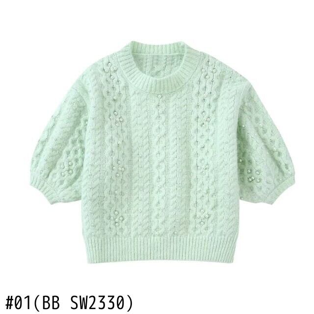 女性 O ネック パール ビーズかぎ針編みショート ニット セーター シックなクロップ プルオーバー トップス SW2330 Oネック 真珠