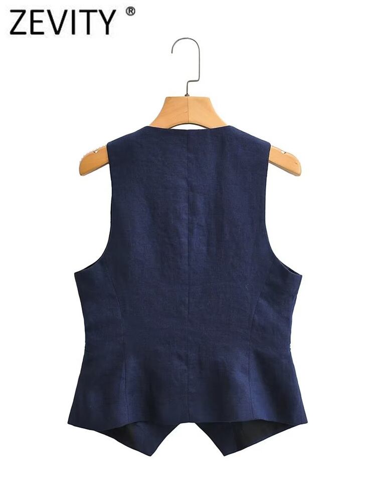 女性 V ネック ノースリーブ シングル ブレスト リネン ベスト ジャケット オフィス ポケット スリム ウエストコート トップス CT2555 Vネック 会社 学校 通勤や通学にも