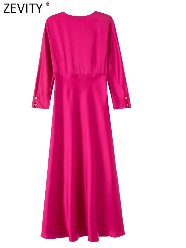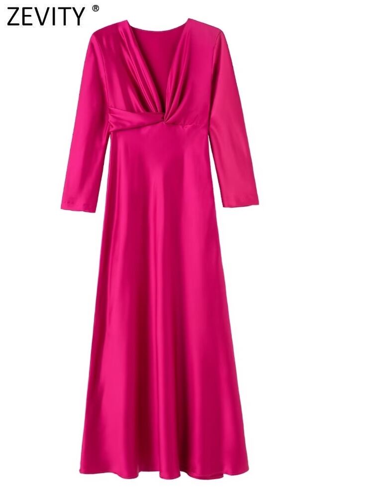 女性プリーツ結び目ソリッドソフトサテンミディドレスオフィスレディビジネススリムパーティー Vestido DS2403 ソリッドカラー 会社 学校 通勤や通学にも